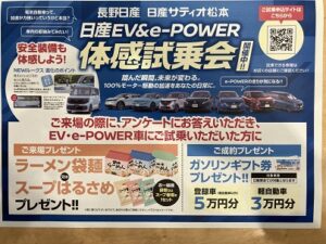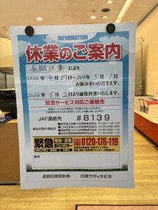 長野日産自動車、日産サティオ松本は明日から5月1日まで