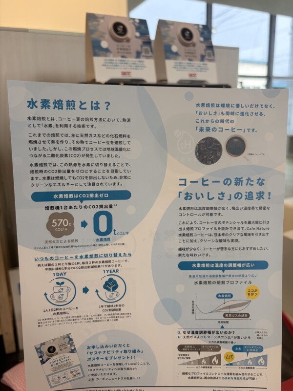 従来のガス燃料の代わりに水素を熱源としてコーヒー豆を焙煎する技術で