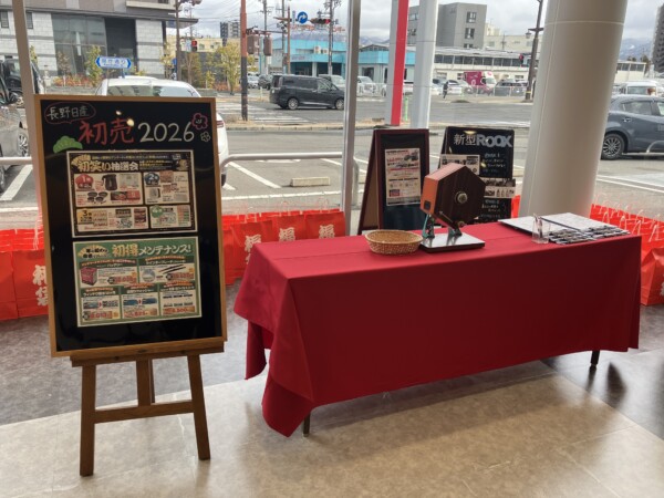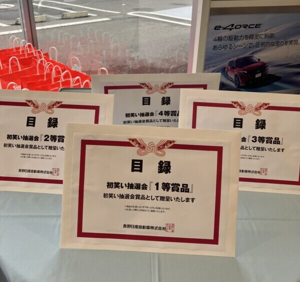 初売りやってます🐎✨ 2026年01月08日|中御所店 🎍新年あけましておめでとうございます🎍 中御所店です❄️ 本年もよろしくお願いいたします😌 長野日産では現在初売り抽選会開催中です! おいしいお肉やあの高級アイスが当たるかも? 新年の運試し中御所店でしてみませんか👀 年末年始休み明けは遠出などたくさん使った愛車を労わる良い機会😊 各種メンテナンスもお得な価格でご案内しております🔧 中御所店でお待ちしております! Visited 61 times, 21 visit(s) today
