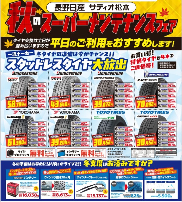 タイヤの購入もお得フェアとなっております