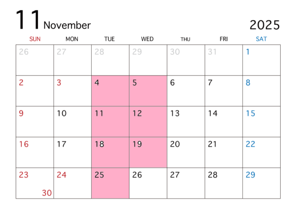 🍂~~~ 11月の定休日のお知らせ ~~~🍂