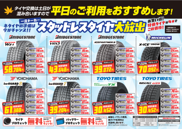 タイヤの無料チェックも実施しておりますので