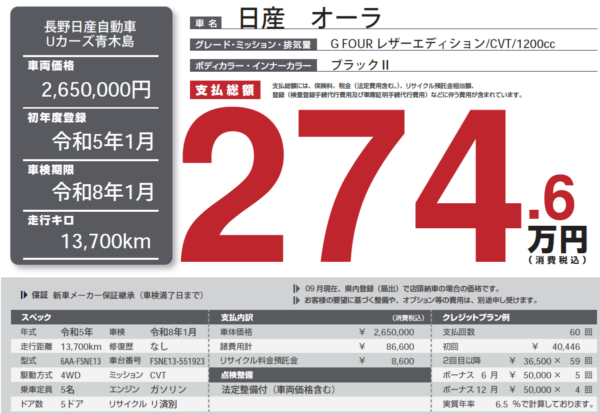全周囲カメラ衝突被害軽減ブレーキなど安全装備もばっちりです