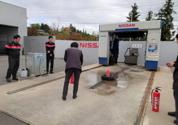 オイルがこぼれてしまったと仮定し水を使い訓練をしました!