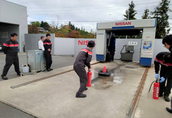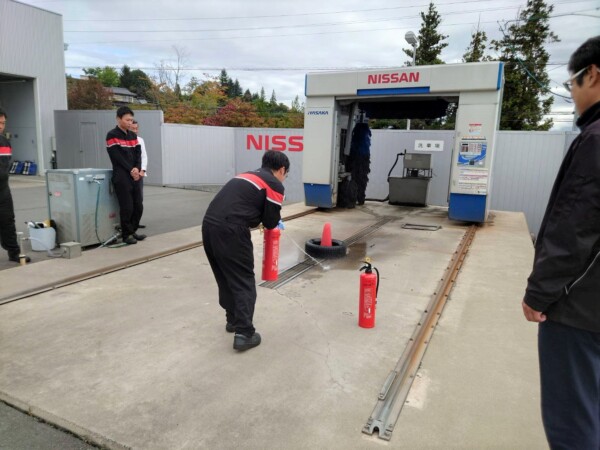 消火器の使い方の確認等をしています