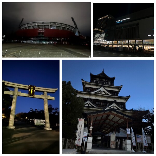 そのまま広島城へ🏯空が少しずつ白み始め夜明けの気配が漂ってきました。