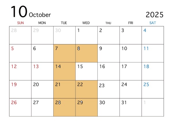 毎週火曜日・8日(水)・22日(水)・29日(水)の日にちでお休みをいただきます。🚘