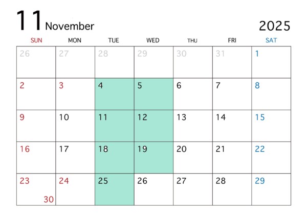 毎週火曜日・5日(水)・12日(水)・19日(水)の日にちでお休みをいただきます。🚘