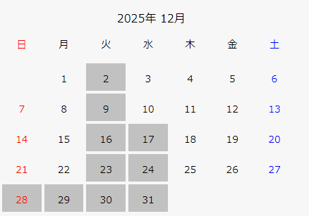 12月定休日のお知らせ🌼