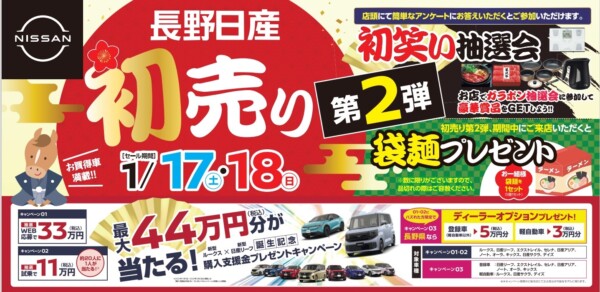 初売り第二弾開催中✨新型リーフ展示中 2026年01月15日|東御店 こんにちは、東御店です^^ 7日からの初売りにはたくさんのご来店ありがとうございました😊 ~18日(日)まで初売り第二弾開催中‼‼ \\新型✨リーフ登場// 東御店の展示車は、こちら↓↓↓ NEW リーフ B7 X プリズムホワイト×スーパーブラック NEWリーフの魅力や性能、また補助金などなど… 東御店スタッフまでおたずねください😊 Visited 15 times, 15 visit(s) today