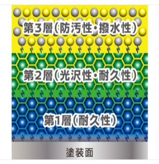 ◆役割の異なる3層のガラス質皮膜で防汚性・撥水性の向上、持続性の向上。