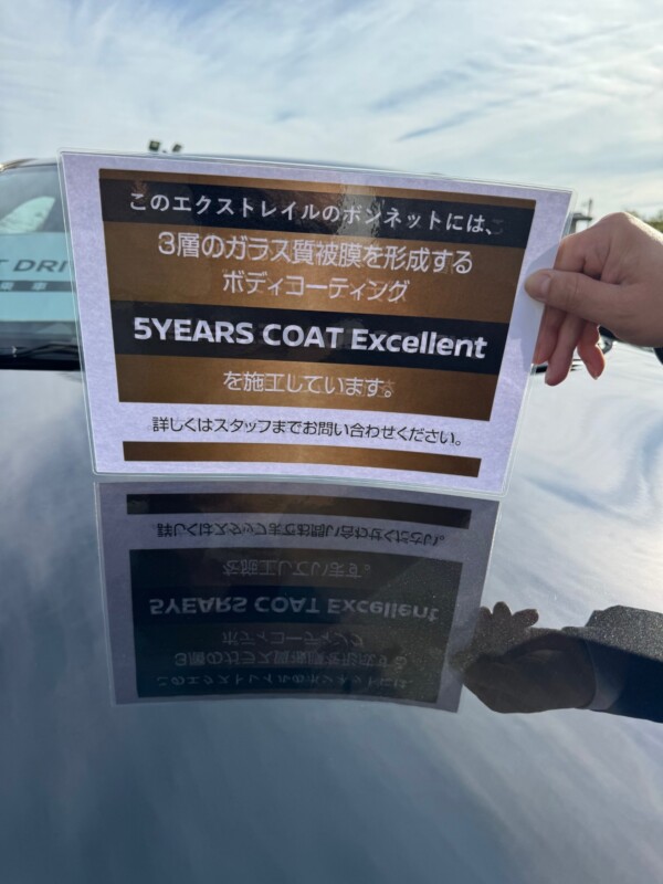 試乗車に5YEARSCOAT Excellentを施工して頂きました。